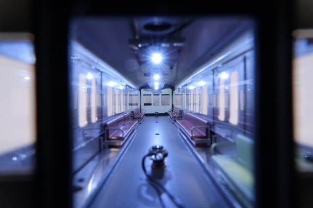 車体と前面はエッチング・プレス製です。台車はTS807を流用、パンタグラフはPT48(銀)、室内にはキャブインテリア・客室内インテリアを装備、室内灯はチップ型白色LED仕様、前照灯・尾灯・前面行先方向幕もLED仕様です(※標識灯は点灯しません)。動力は、1012Mc車にキャノンEN22軸短モーターとACEギアシステム(2750P-軸距27.5㎜ φ10.5プレート車輪)を搭載しています。