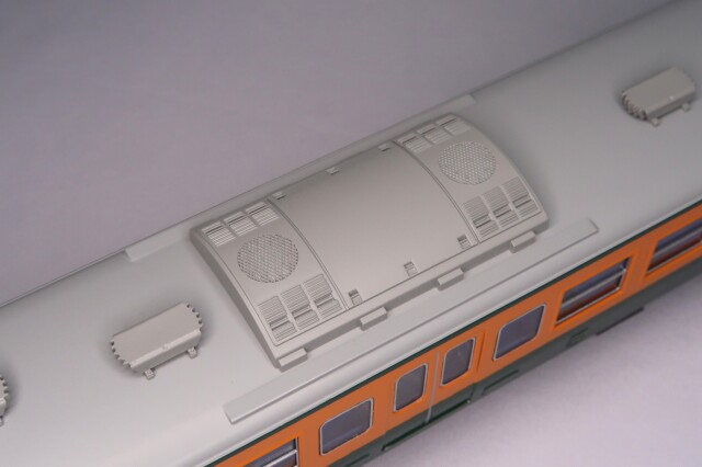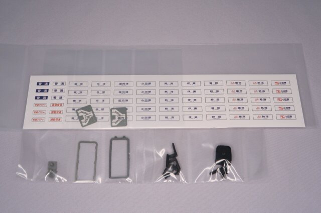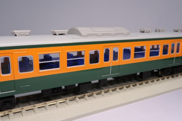 車体はエッチング・プレス製、前面はロストワックス製で、ドア窓と戸袋窓はHゴム表現も施したプラスチック成型品を使用しました。台車はTR212(クハとサハ)・DT21(モハ)・TR69(サロ)を使用し、共にダイキャスト製です。パンタグラフはPS16グレー、キャブインテリア・客室内インテリアを装備、室内灯はチップ型白色LED仕様、前照灯・尾灯・前面行先幕もLED仕様です。動力は、モハ112-2000にキャノンEN22一般モーターとACEギアシステム(2600PB-軸距26.0㎜ φ10.5プレート黒メッキ車輪)を搭載しています。