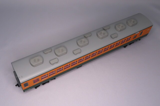 本製品「サロ110-1200」は、簡易リクライニングシートの採用で定員が60名に増加したグリーン車で、2000番台のシートピッチ拡大車にも組み込まれていました。