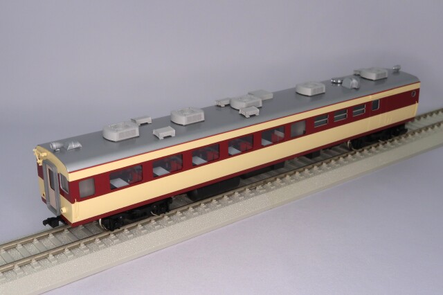 車体はエッチング・プレス製、前面はロストワックス製で、床下機器はエンドウ製、初期型のAU12型クーラーはTOMIX製を採用しています。台車はTR69(クハ・クロ・サロ・サハ・サシ)・DT32(モハ)を使用し、共にダイキャスト製です。パンタグラフはPS16H(銀)、キャブインテリア・客室内インテリアを装備、室内灯はチップ型白色LED仕様、前照灯・尾灯・ヘッドサインもLED仕様です。動力は、モハ484形式にキャノンEN22一般モーターとACEギアシステム(2600P-軸距26.0㎜ φ10.5プレート車輪)を搭載しています。