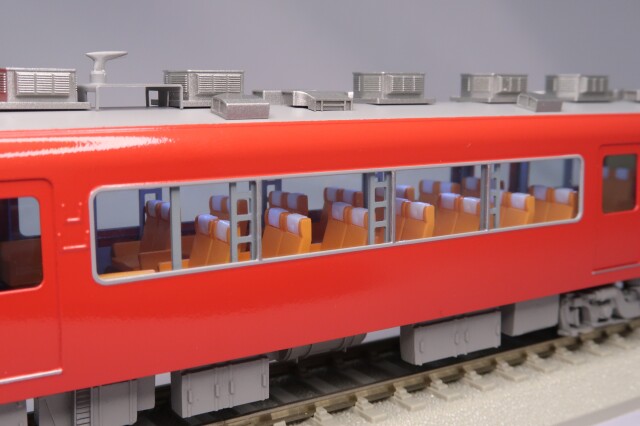 製品は、昭和58(1983)年から開始された特別整備後の姿で、平成11(1999)年に特急専用車から一般車に格下げとなり白帯が無くなったものの、内装は特急専用車のままだった2次車「7011編成」をプロトタイプとして模型化しました。