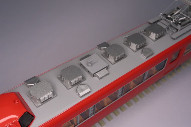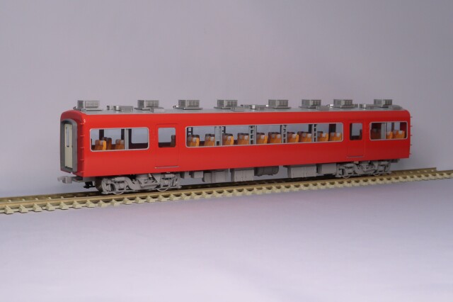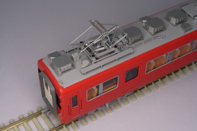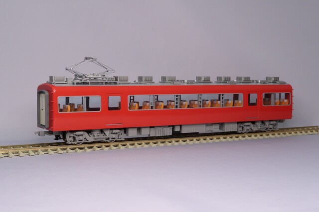 車体はエッチング・プレス、前頭部と妻板はロストワックス製です。台車はFS335、パンタグラフはPT43E(銀)、室内にはキャブインテリア・客室内インテリアを装備、室内灯はチップ型白色LED仕様、前照灯・尾灯・前面行先種別表示器もLED仕様です。動力は、中間車「モ7162」にキャノンEN22軸短モーターとACEギアシステム(2600WG-軸距26.0㎜ φ10.5波打グレー車輪)を搭載しています。