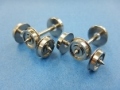 車輪径は9.5mm。ピボット軸にて軸の先端が尖っています。4軸入り(1両分)です。(カツミ製品)