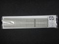 この道床は切断加工され7分割されています。必ず使う両端部の長さはそれぞれ50mmで、この部分だけをそのままつなげれば最短100mm長レールとなり、中間部の5個は20~35mmの間でそれぞれ長さを違えてあるので、組み合わせて中間に入れれば、おおよそ必要な長さのレールをまかなえると思います。堅牢な道床ですが、材質は比較的柔らかく、加工は容易です。余ったレールを糸の子かニッパーなどで切断し、道床裏面のレール取り付け部に瞬間接着剤を流して固着します。