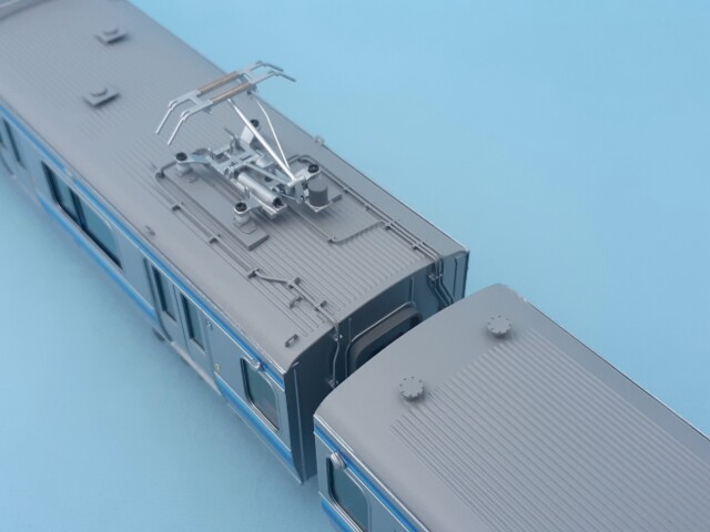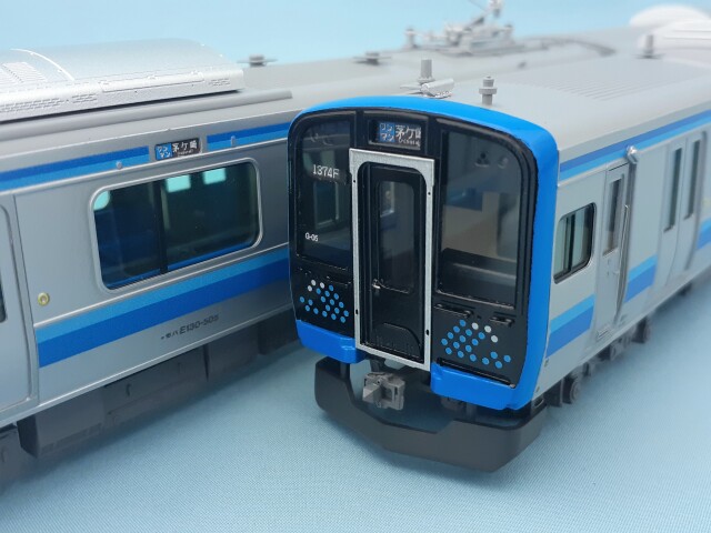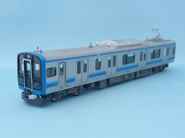 車体はエッチング・プレス製、前面はロストワックス製です。台車はDT80を使用、パンタグラフはU-TRAINS製のPS33D(銀)、キャブインテリア・客室内インテリアを装備、室内灯はチップ型白色LED仕様、前照灯・尾灯・前面行先方向幕もLED仕様です。動力は、先頭車クモハE131-500にキャノンEN22一般モーターとACEギアシステム(2600PB-軸距26.0㎜ φ10.5プレート黒メッキ車輪)を搭載しています。。