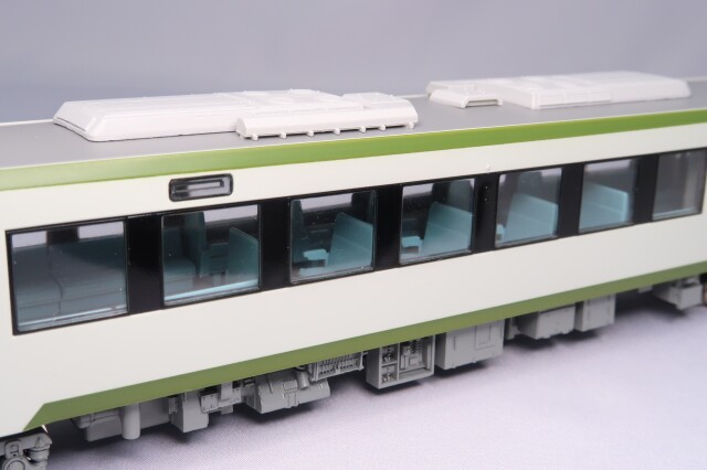 ヘッドライト・テールライト・室内灯を標準装備、屋上のクーラーや床下器具等はホワイトメタル製。