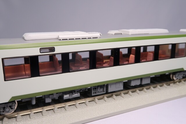 ヘッドライト・テールライト・室内灯を標準装備、屋上のクーラーや床下器具等はホワイトメタル製。
