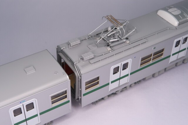 車体はエッチングプレス製、前面はロストワックス製です。台車は新規製作のFS378(ダイキャスト製)を使用、パンタグラフはPT-44、キャブインテリア・客室内インテリアを装備、室内灯はチップ型白色LED仕様、前照灯・尾灯・前面行先表示もLED仕様です。動力は、9号車6912形にキャノンEN22一般モーターとACEギアシステム(2600WG-WB26.0㎜ φ10.5波打グレー車輪)を搭載しています。